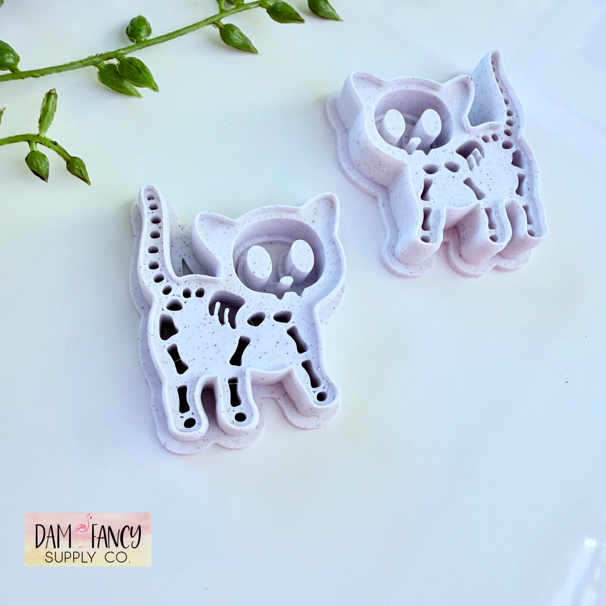 Bring a little mischief to your clay creations with these fun skeleton kitty cutters! Perfect for fans of spooky season, these cutters features a cute cat design that capture the spirit of Halloween all year long. Whether you're crafting playful single charm earrings or statement dangles, these cutters add just the right touch of wicked charm.